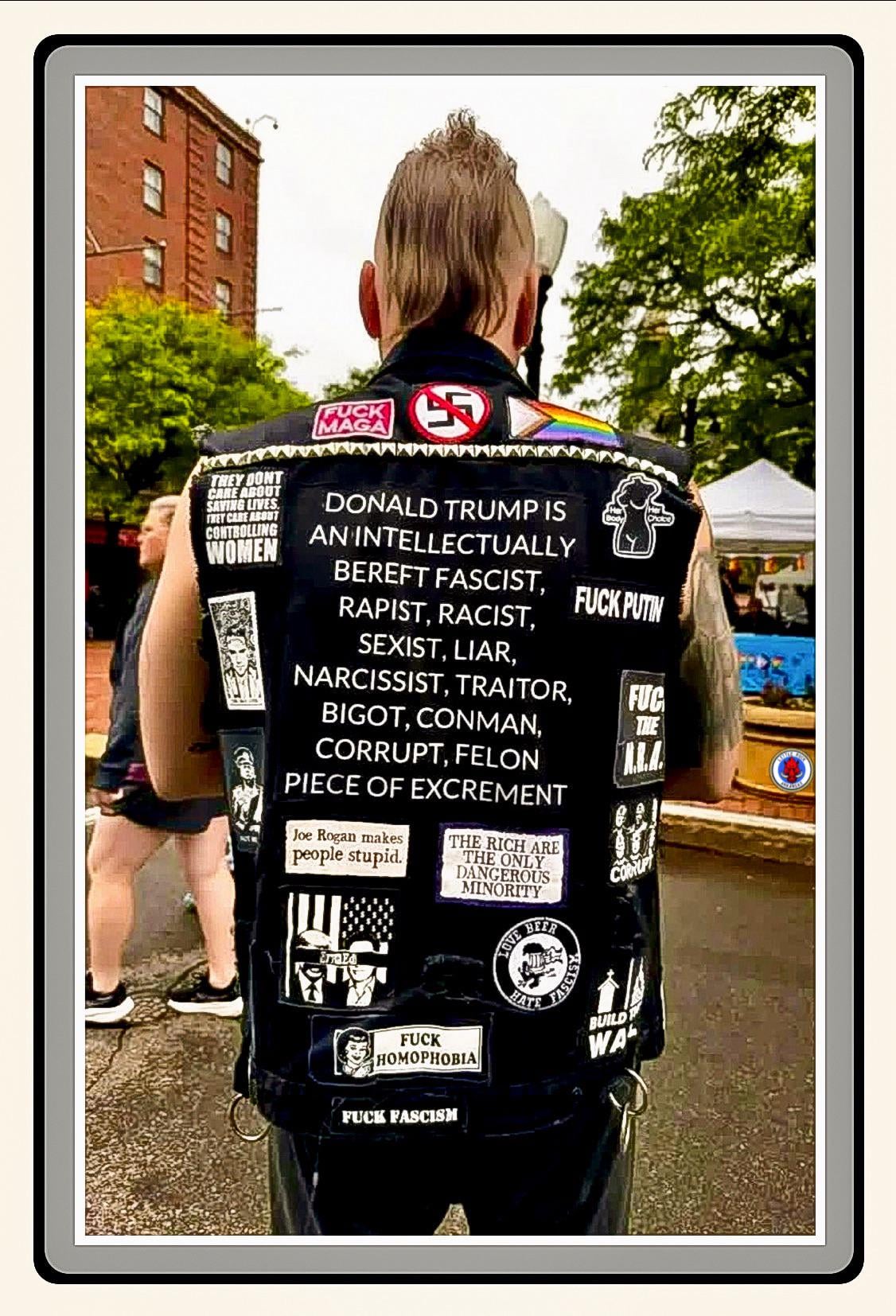 doll-haus on November 1, 2025 10:22 pm Uh oh. This dangerous domestic terrorist is threatening us all with hist back full of bumper stickers! This is why the constant violations of the second amendment need to stop. I *need* a personal nuclear deterrent to protect myself from shit like this.