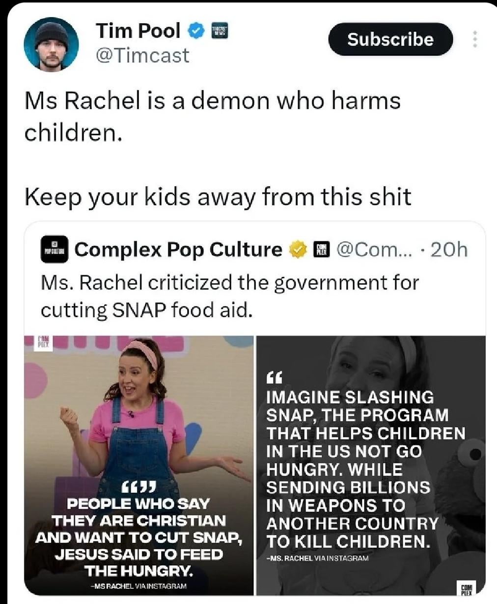 Calling someone a demon for wanting to feed children says more about you than them, Tim.