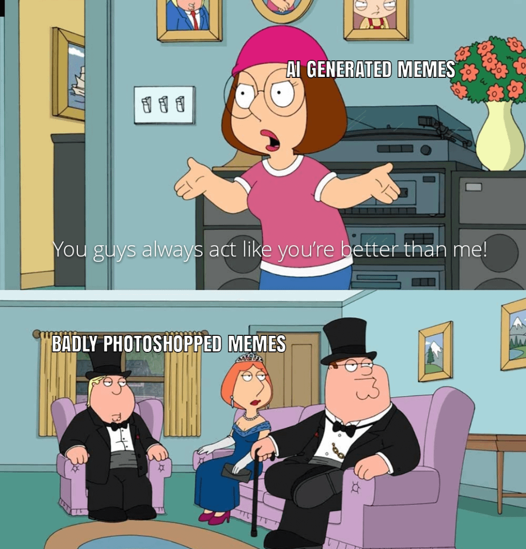 Deep question, if we photoshop a old AI generate meme is it still AI generate or now a normal meme???