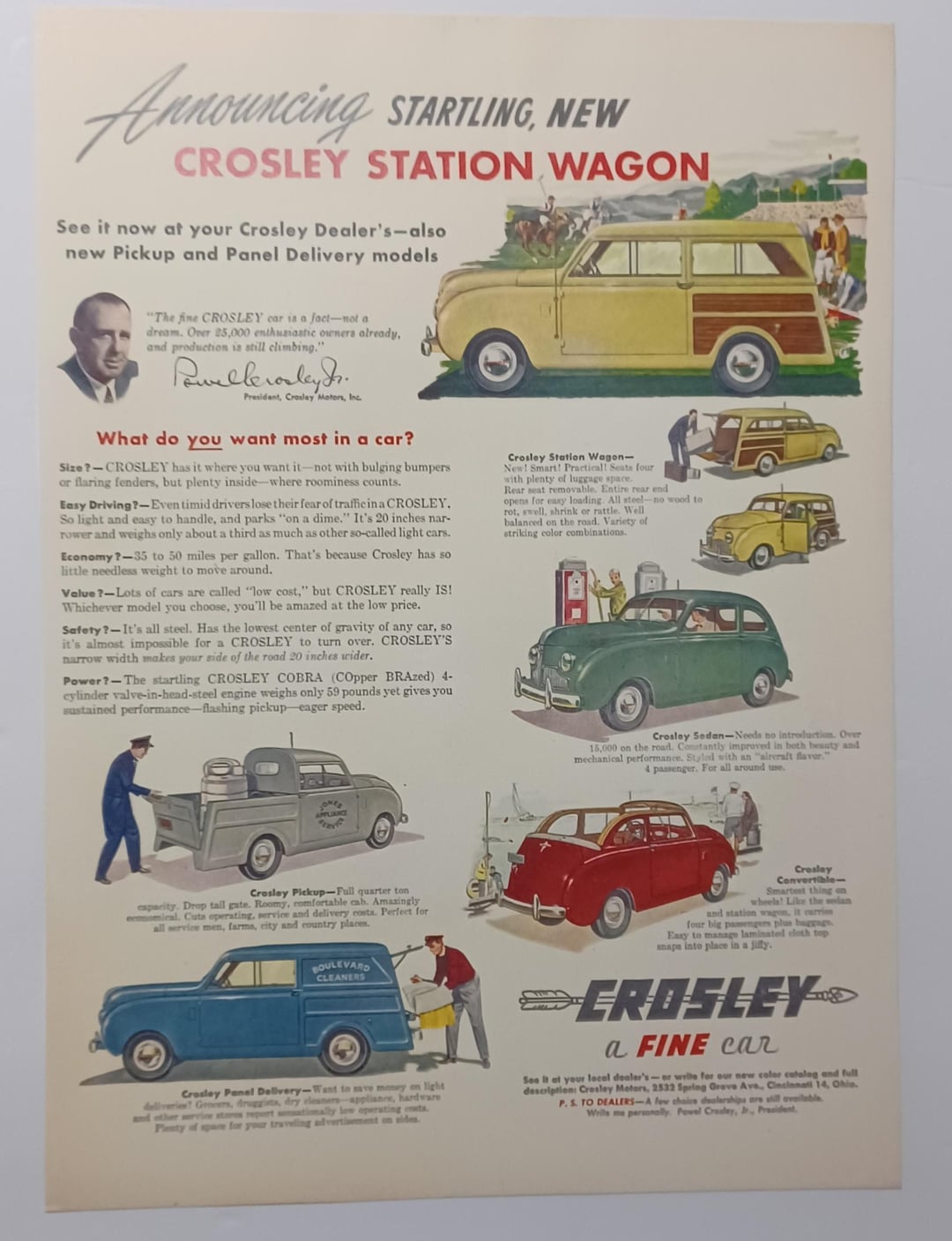 Home » Vintage Advertisements » Announcing Startling, New Crosley Station Wagon.