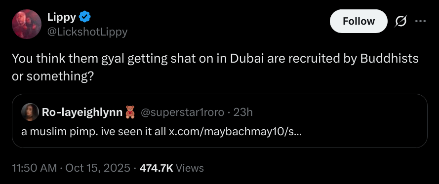 “Gyal getting shat on” is diabolical.