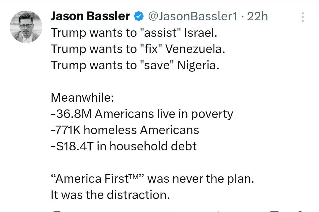 America First was a grift. It was the wool pulled over the eyes of the maga crowd that believe he’s going to enrich them and not himself. His base is much closer to being one of the statistics above than they are to being helped by the con man in chief.