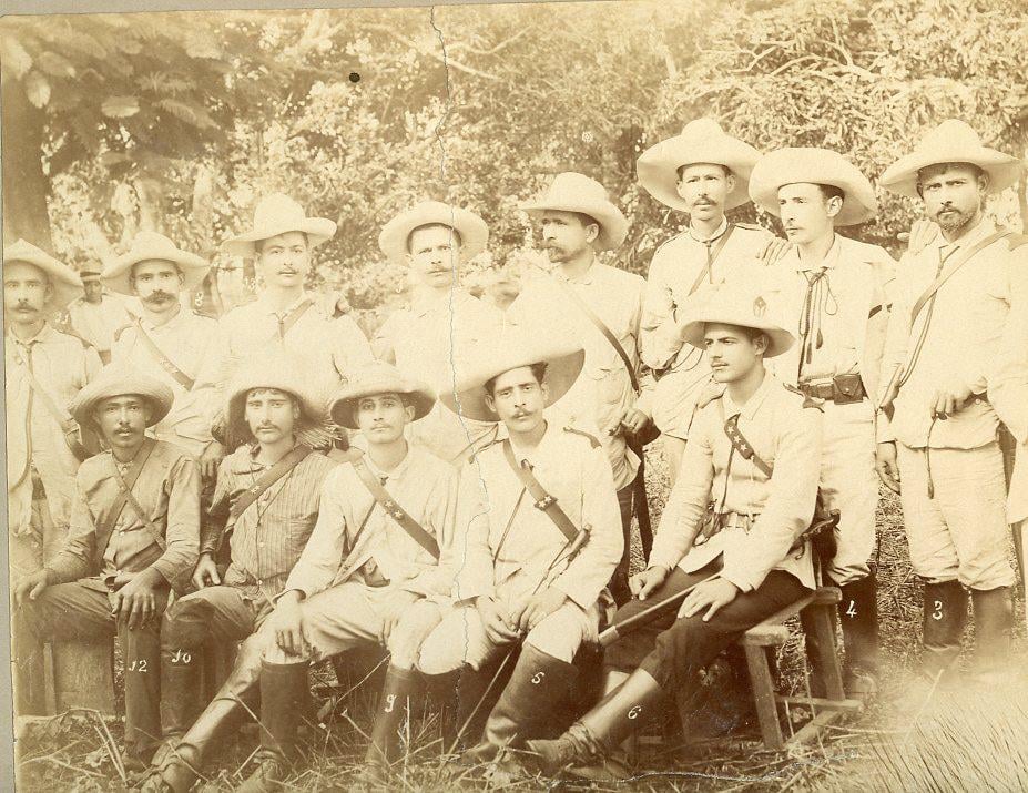 Individuals present in the photo: Division General Eduardo García, Colonel José Álvarez (“El Gallego/The Galician”), Commandant Pablo Gallardo, Lieutenant-Colonel Dr. Sigarroa, Lieutenant-Colonel Aurelio Diaz, Commandant Luis Mestre, Commandant José A. Rodriguez, Captain Julio Orta, Lieutenant Everardo Martínez, Captain Aurelio Rodríguez, Lieutenant Enrique Pérez, Ensign Pilar Febles, and Lieutenant Rafael Vega.