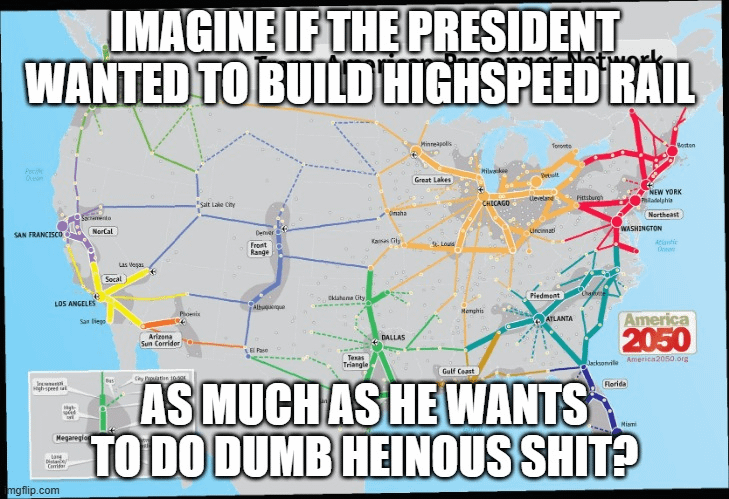 Highspeed rail? What do you think this is? Japan 50 years ago? 🙂