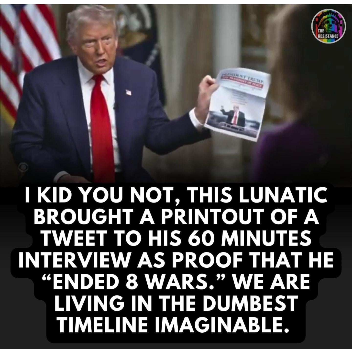I would like to see him list the 8 wars. Npr, obamacare, and pbs dont count as enemy combatants