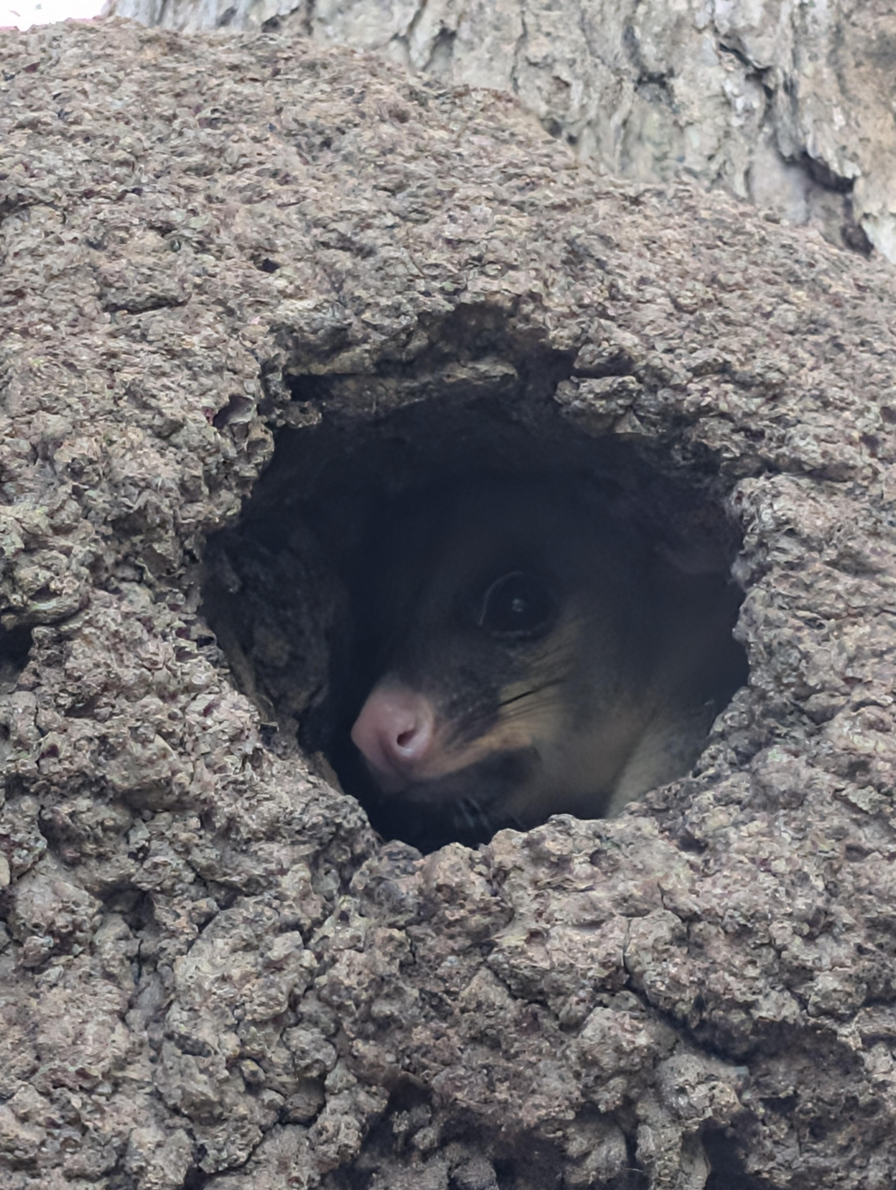Talk about prime real estate being passed down! Kookaburras moved out, possum moved in. It’s like a woodland Airbnb, super cute tenant