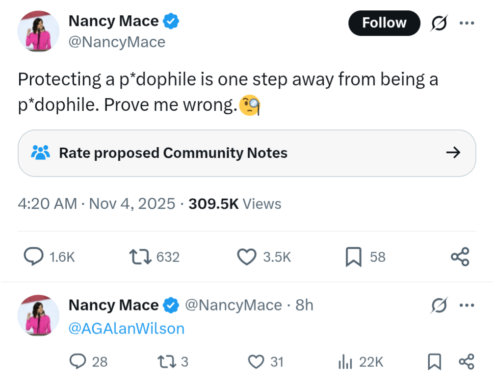 DawgoftheNorth on November 4, 2025 10:03 pm When the petition hits 218, look for Boebert or Mace to opt out of the petition after threats or bribes from Trump.