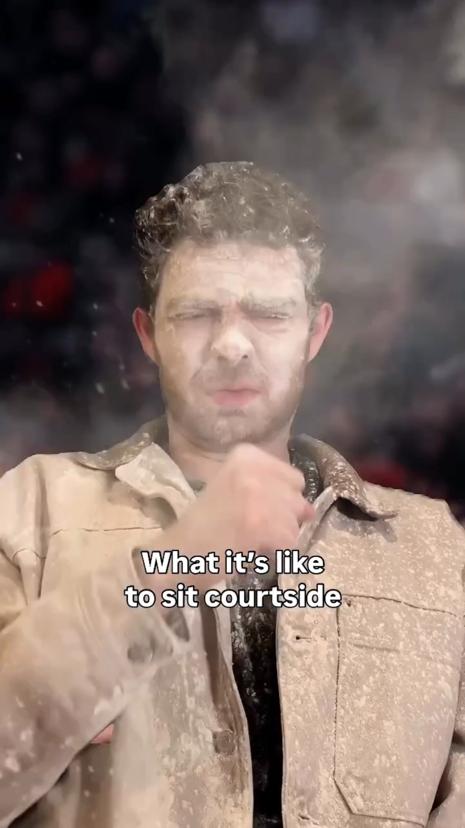 I know the vid is just jokes – but that’s the scorer’s table… where lots of officials, refs, team SID, and essential people for the running of the event are. In a lot of venues radio also sits there. Its likely he knew them really well because they’re at almost all the events, so he’s just messing with em.