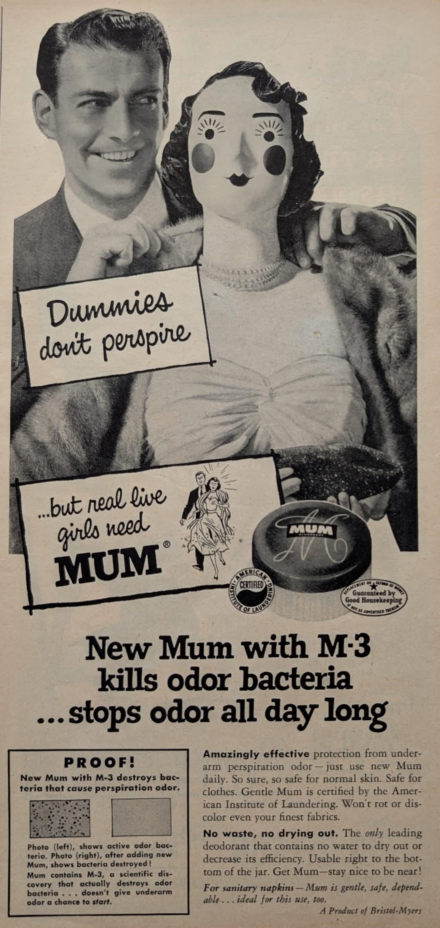 Dummies Don’t Perspire, but real live girls need MUM. Motion Picture and Television Magazine October 1953 by Ebonystealth