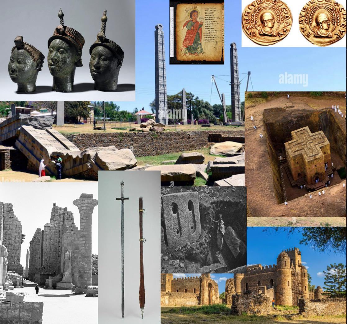 Correction: The structure in the bottom left, the Kiosk of Taharqa, was constructed in Egypt by the 25th dynasty, whose rulers were Nubian. So technically not sub-saharan, but black.