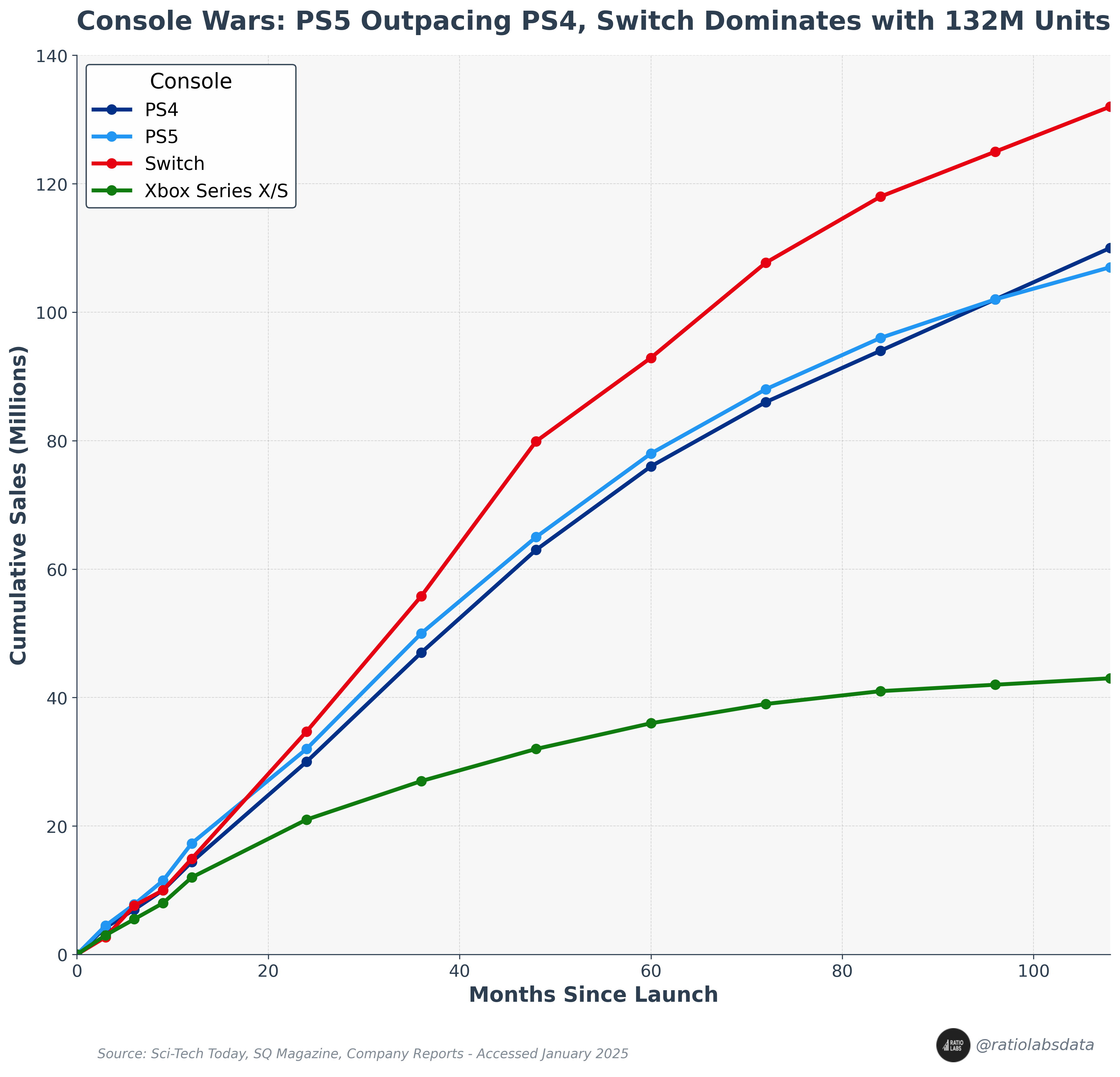 I don’t know how to put this any other way, the PS5 hasn’t been out for 10 years it was only released in 2020 making it 5*12=60 months old. Ditto for the Series X. Also gotta point out that xbox stopped reporting sales. The numbers are estimates.