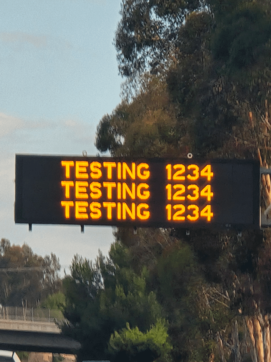 My job used to be managing signs like this. For testing out either put the word test or I would fill the lcd matrix with the letter ‘B’. We would do this to see if there’s any burnt out pixel boards that needed to be replaced.
