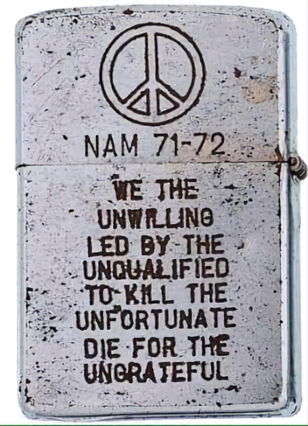 Still relevant today, sadly! Thank You for your service anonymous veteran lighter owner!