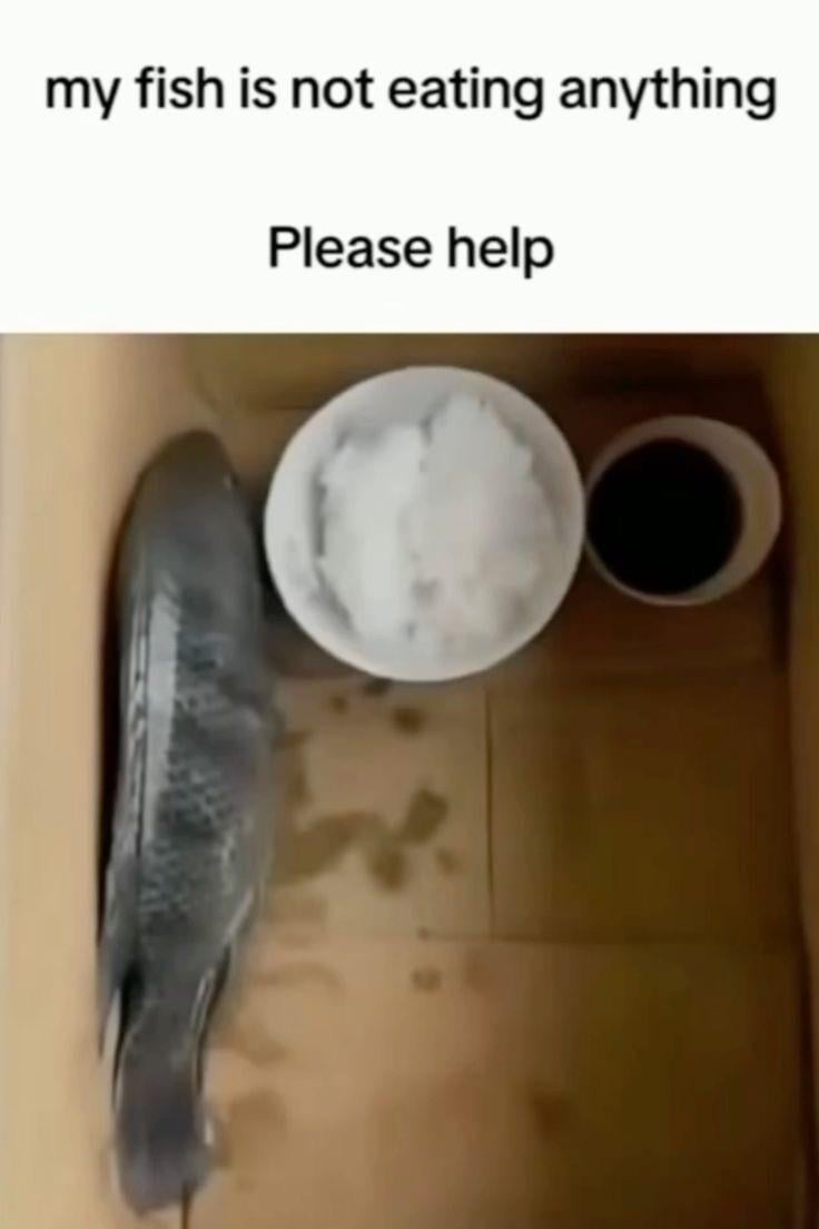 Fishes prefer non veg food, eat this rice by yourself. And give it some eggs