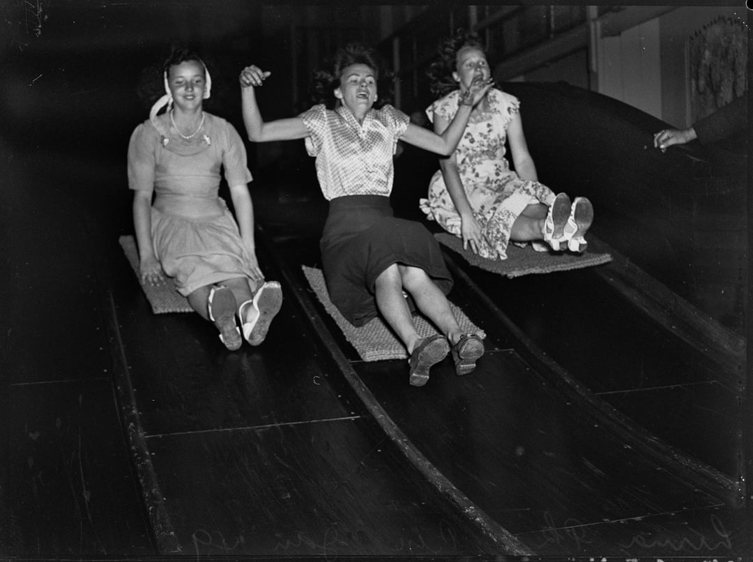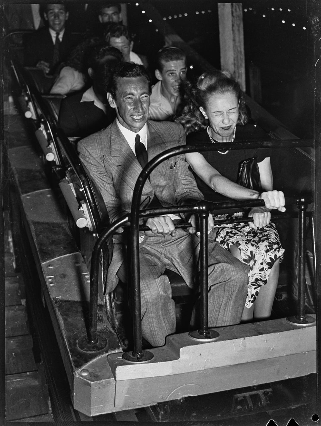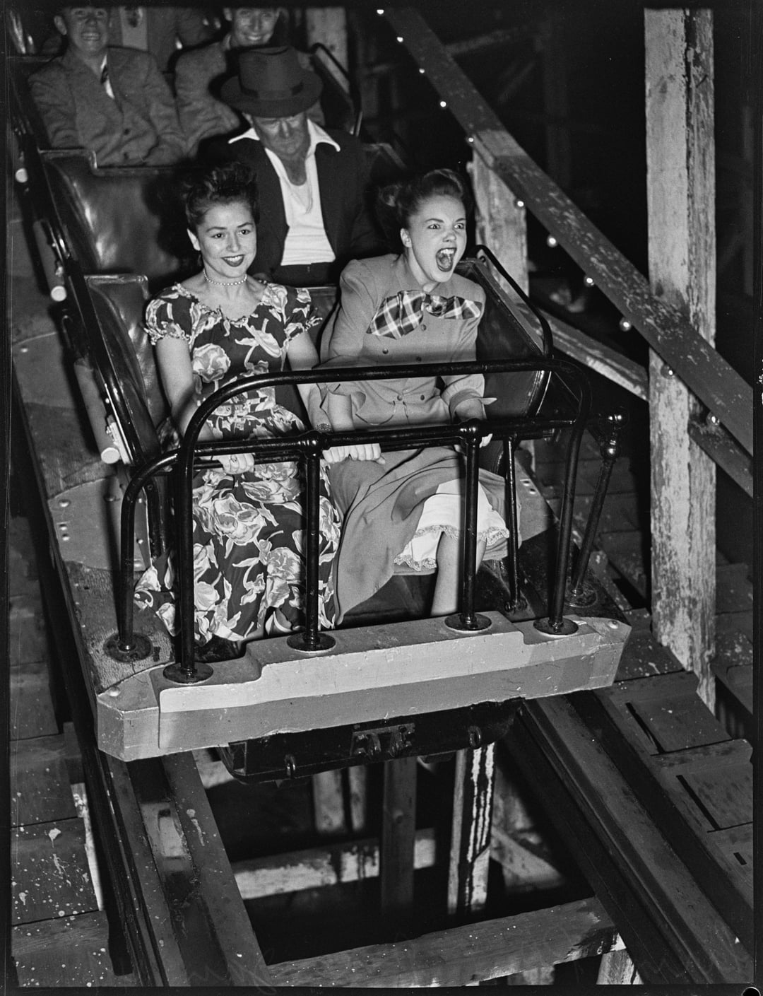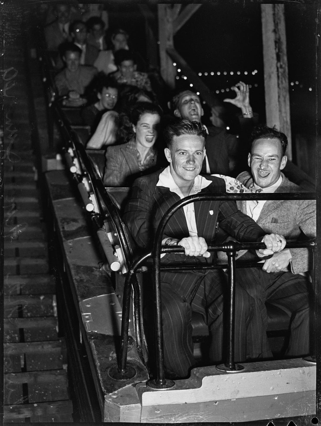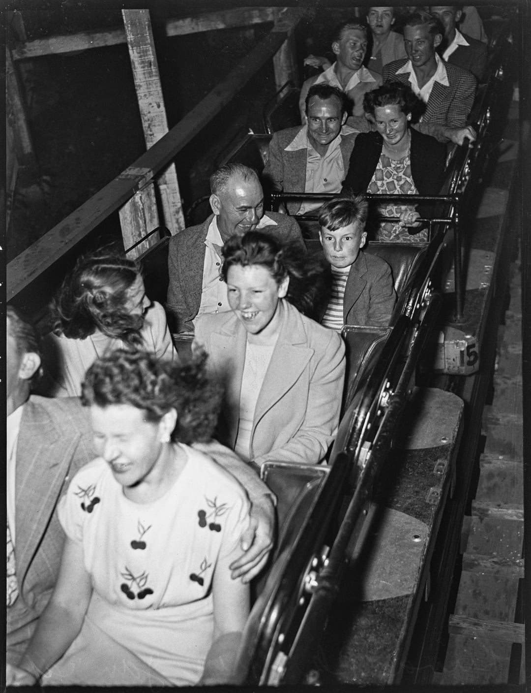 When people would dress up to go to an amusement park! Looks fun. And sorta safe!