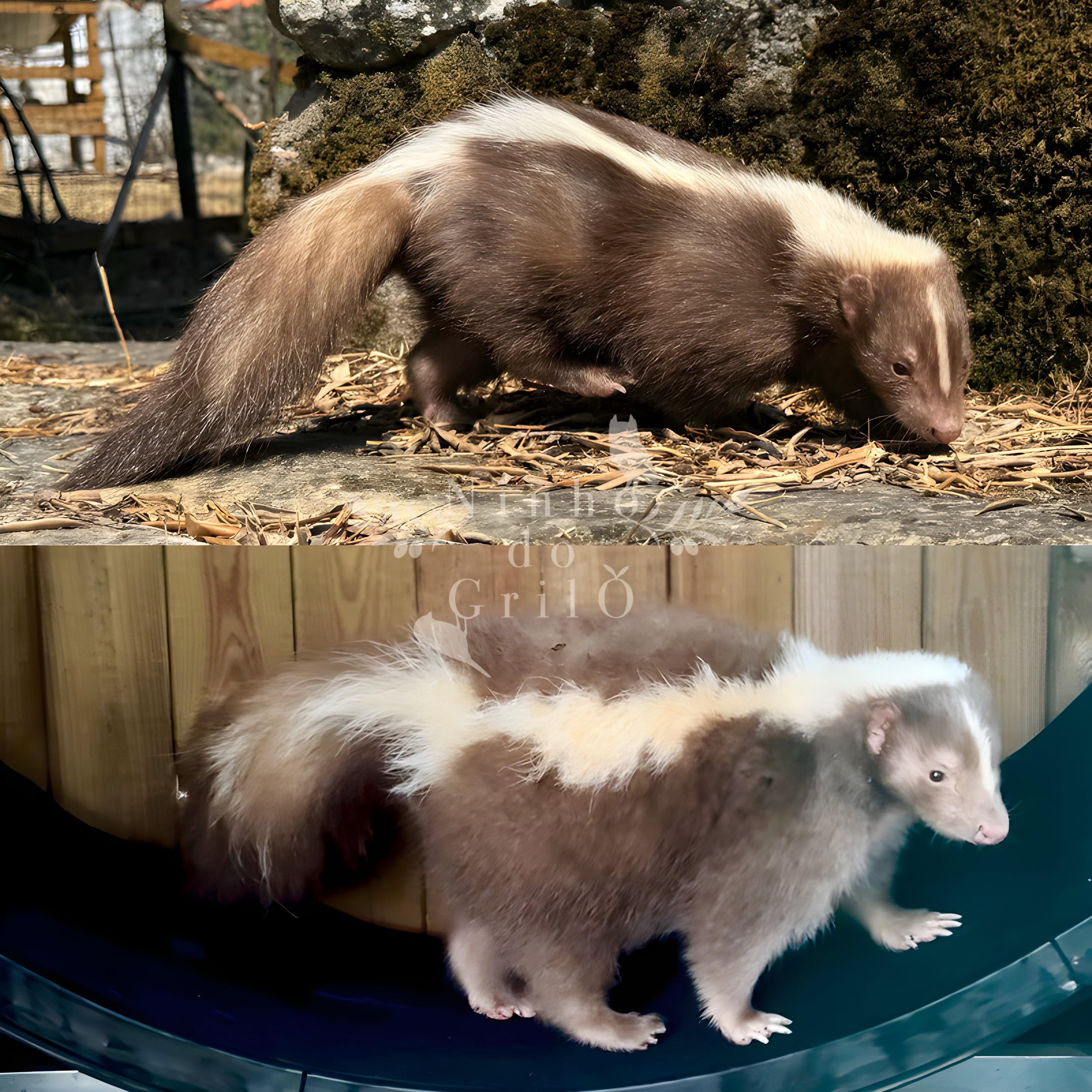My pet skunk, Willow, in the Summer (slender body, shiny fur) vs. in the Winter (stocky body, wooly fur).