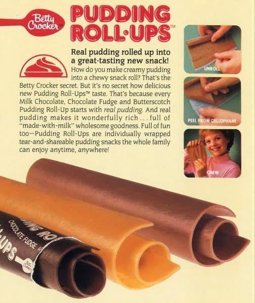 1987 General Mills ad for Betty Crocker’s Pudding Roll-Ups!