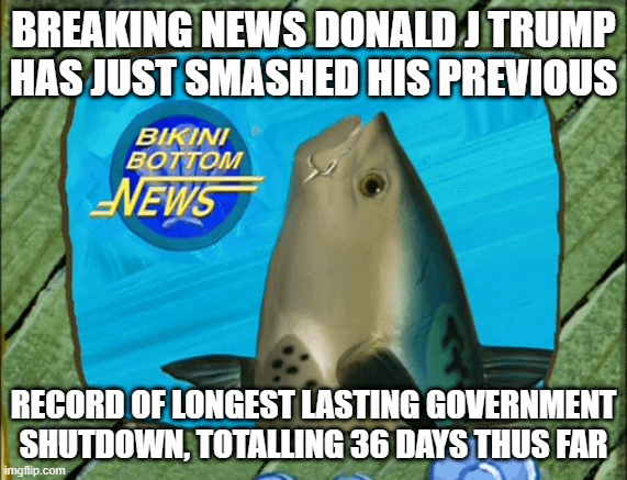Breaking news, brought to you by BikiniBottom news network, Fish reporting. BikiniBottom news network is not affiliated with DOJ nor endorses Donald J Trump. by TailungFu