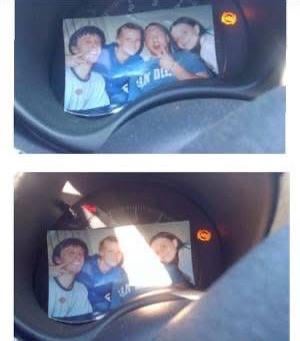 1. She really kept the photo covering her speedometer and odometer? That’s… not very bright.
