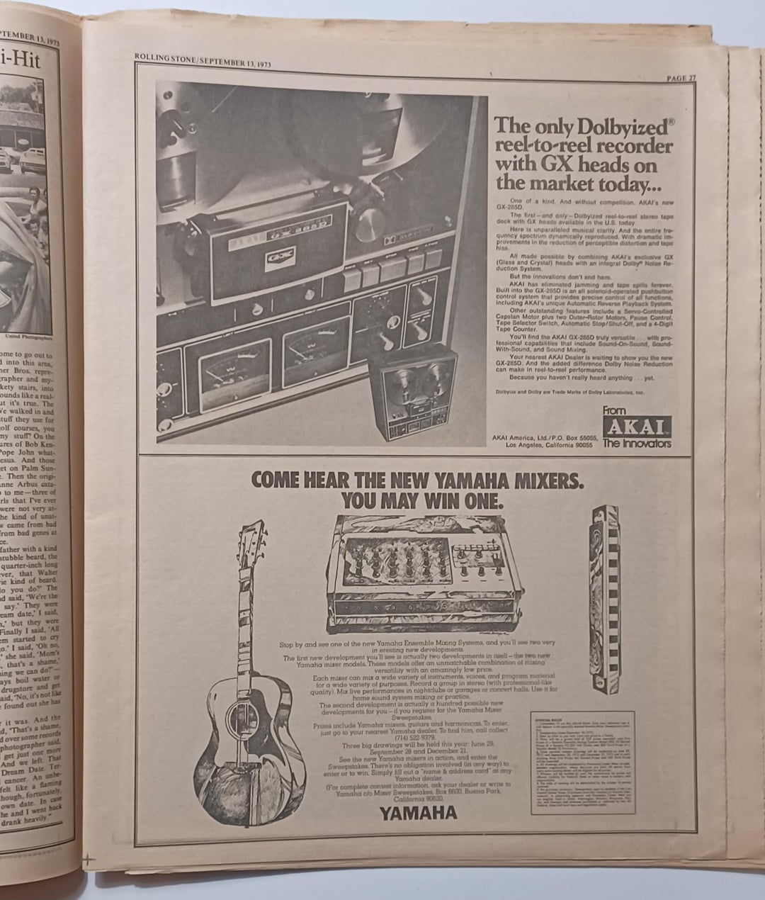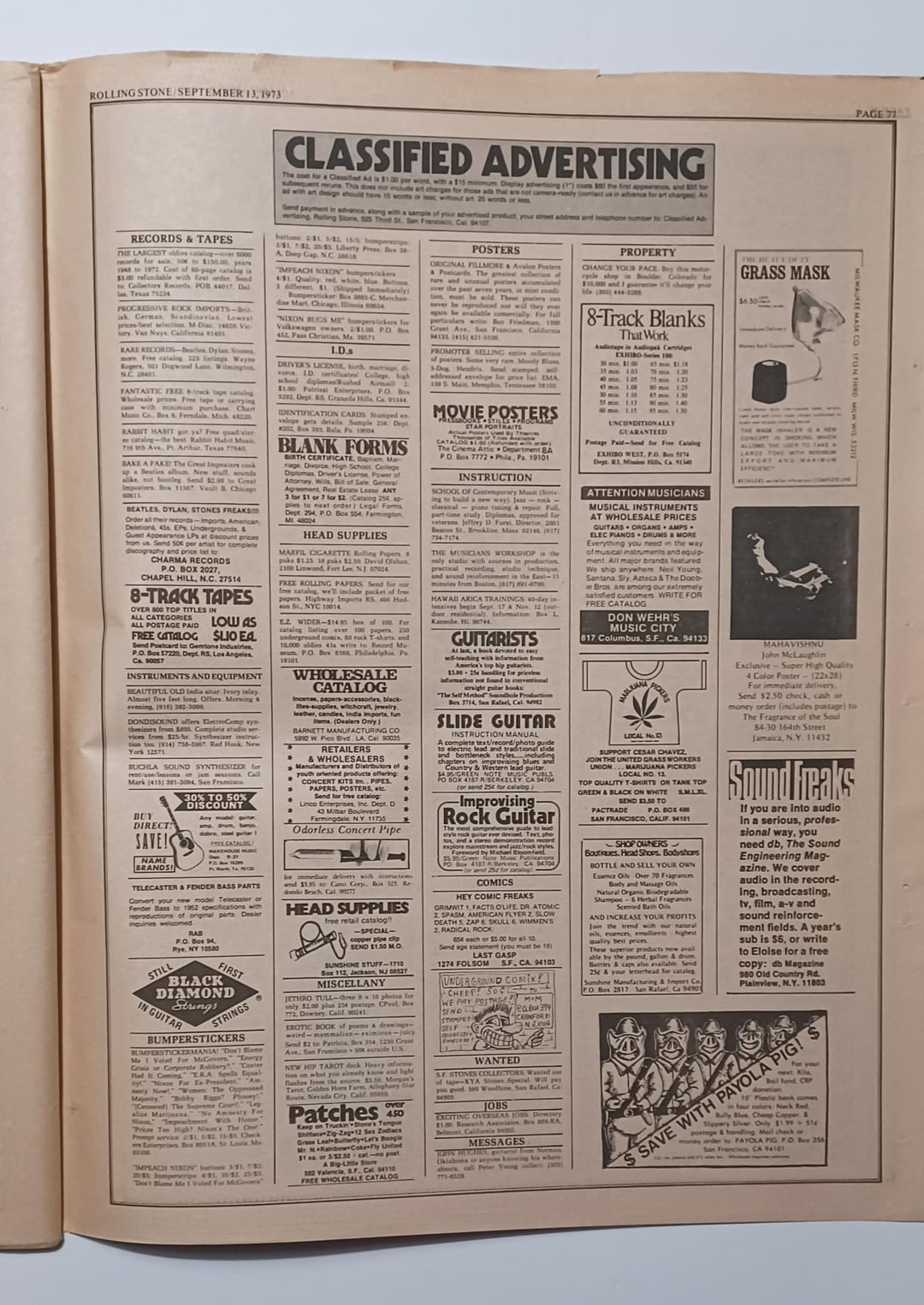 Some ads from the September 13, 1973 issue of Rolling Stone.