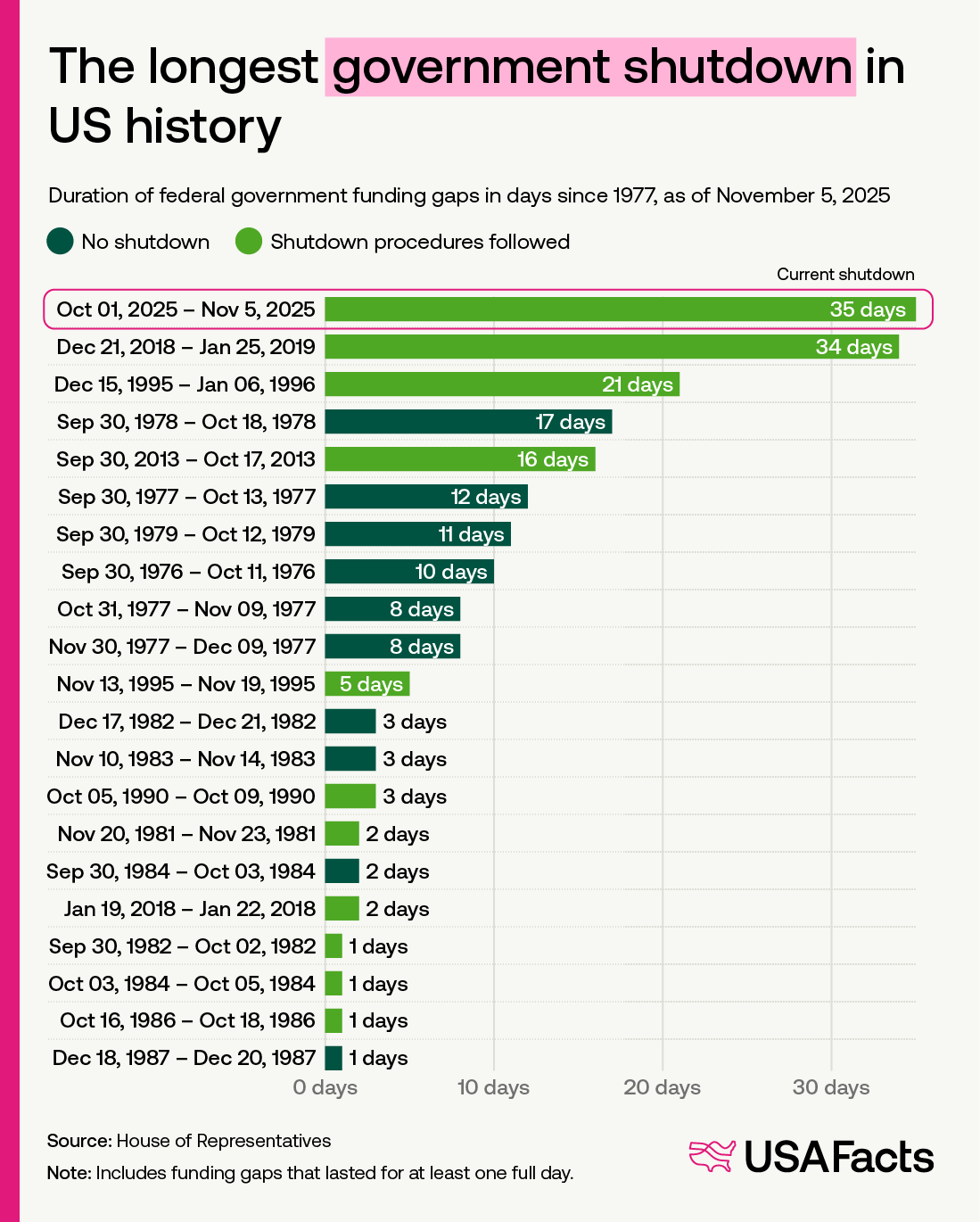 1. Source: [US House of Representatives](https://history.house.gov/Institution/Shutdown/Government-Shutdowns/)