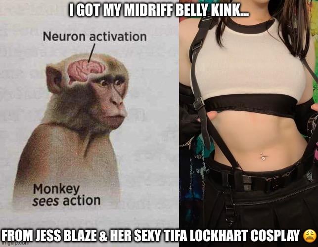 Midriff plus Tifa cosplay is dangerously effective. Brain shuts down nostalgia kicks in and suddenly discipline evaporates instantly for me by Flashbomb84