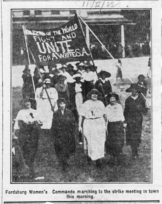 Members of the South African Communist Party during the early stages of the racist-communist Rand Revolt, with a banner reading “Workers of the world, Fight and Unite for a White S.A!” 11th February 1922, SA. [564×707]