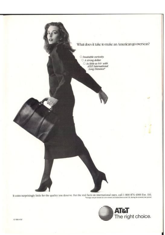 “What does it take to make an American go overseas?” AT&T ad, 1989.