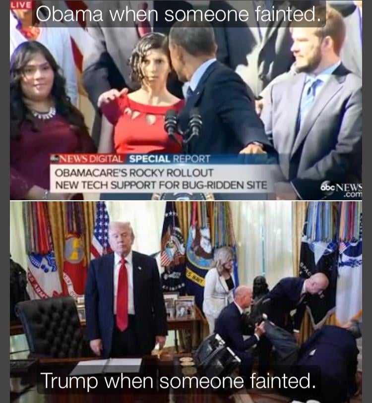 The bottom image image should be the Time Magazine photo of the year. It perfectly sums up the entire Trump Presidentcy. Ailing, mentally compromised, completely unconserned with the plight of others.