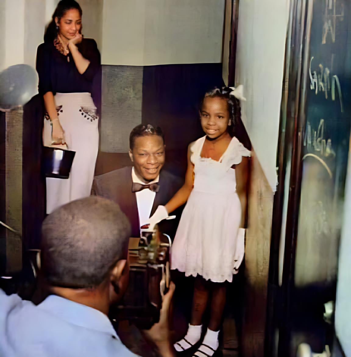 Gladys Knight was winning talent shows singing as a little girl so she might have had notoriety in Atlanta when Nat King Cole took this picture with her.