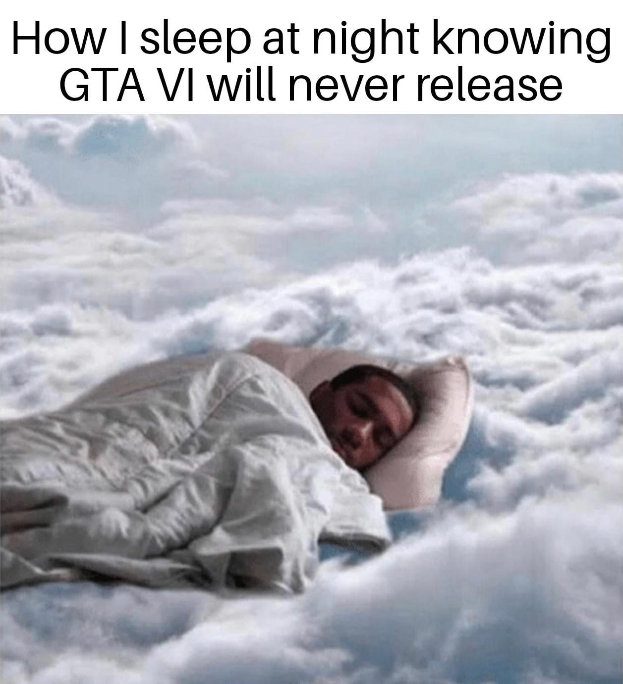 GTA VI release is the greatest bedtime story hearing about it helps me sleep peacefully every night.