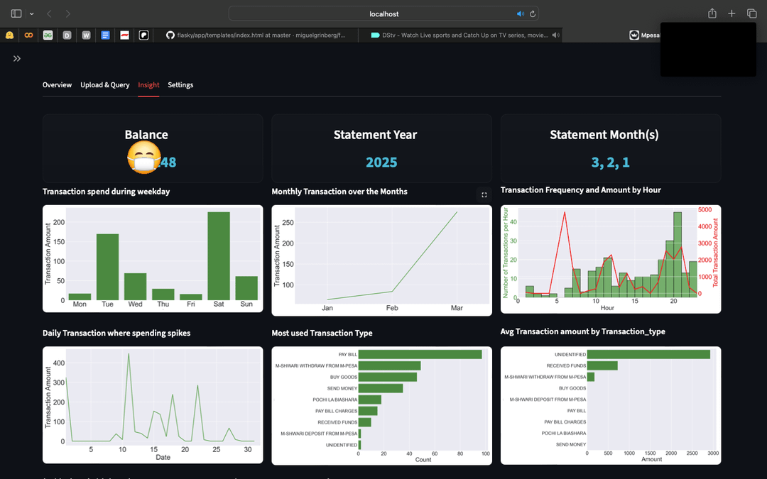 The power of combining data cleaning and visualisation under Streamlit to produce a user-friendly system. Those based in Kenya and neighbouring countries can tell what the M-Pesa statement contains. It’s a data source that can produce endless information #AI #DataScience #dataisbeautiful