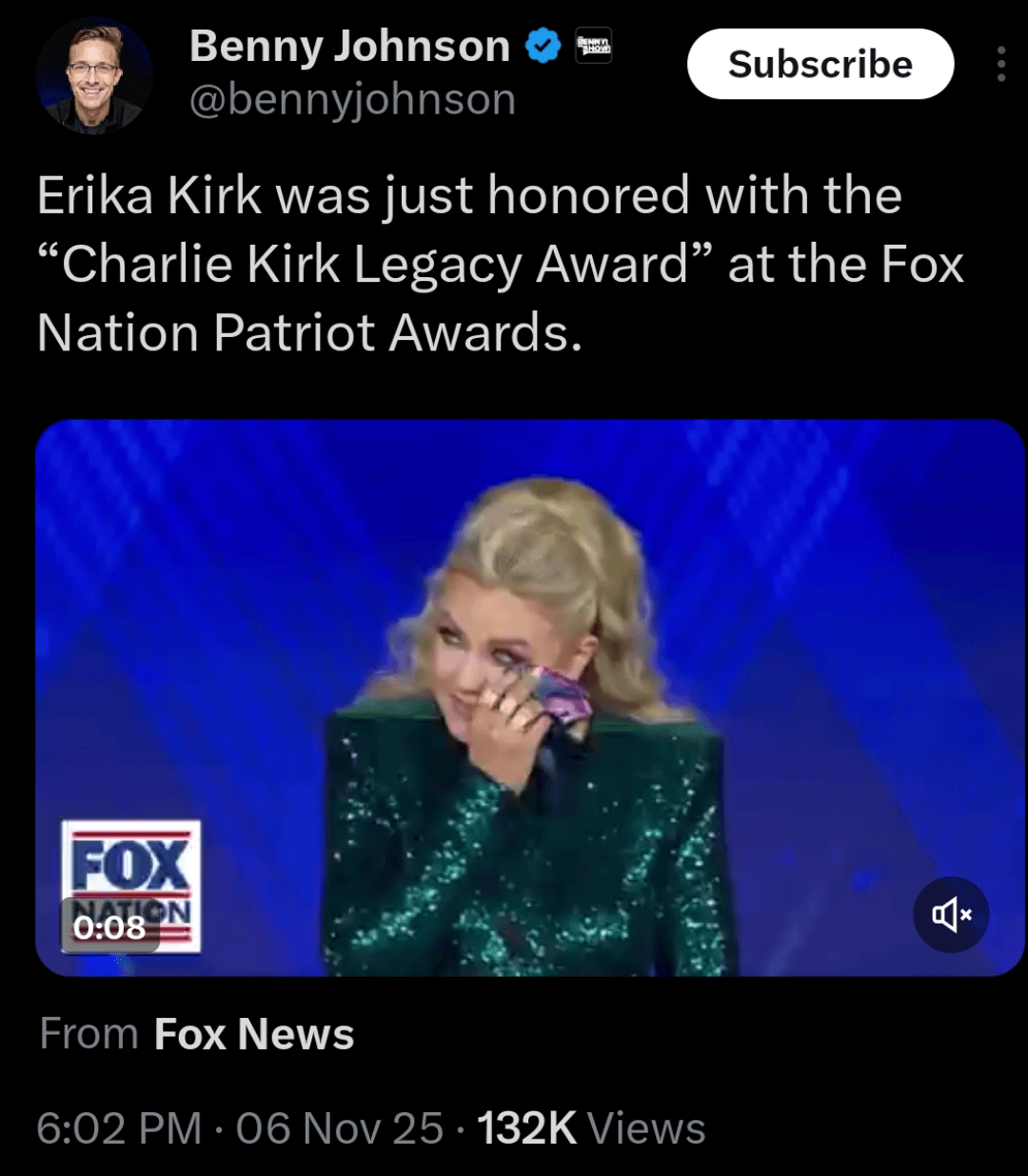 “Erika, you are receiving this award in recognition of you fucking JD Vance to save him from his heathen wife.”