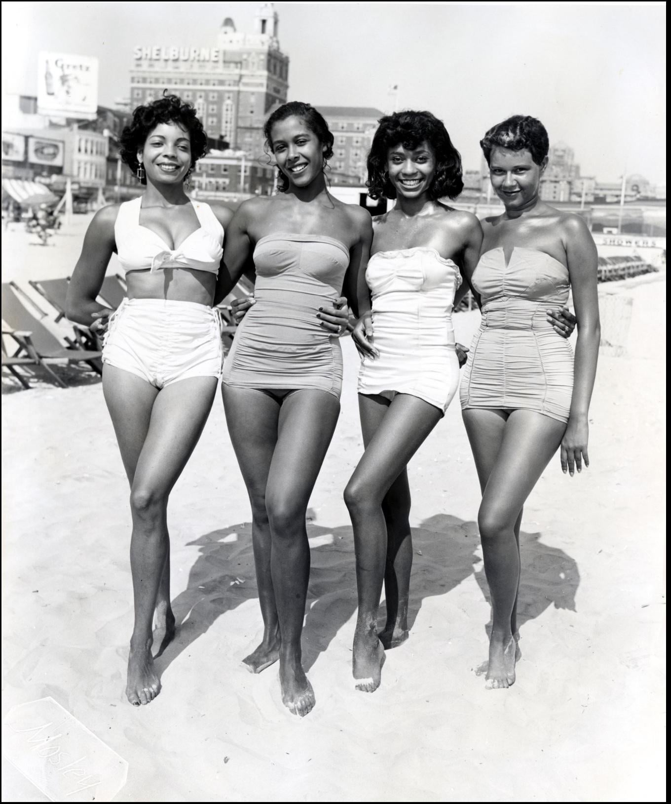 Group of friends give their best sunny smiles at the beach, Atlantic city, New Jersey, 1960s. by Electrical-Aspect-13