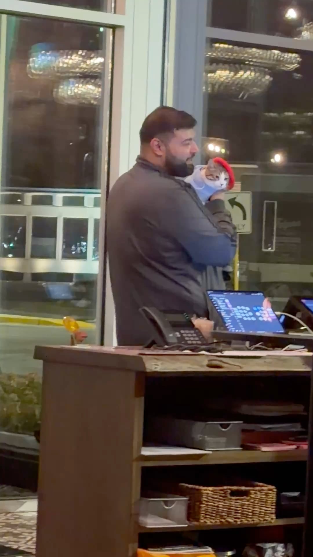 This isn’t funny. Thus is trashy. Get that animal out of the restaurant.