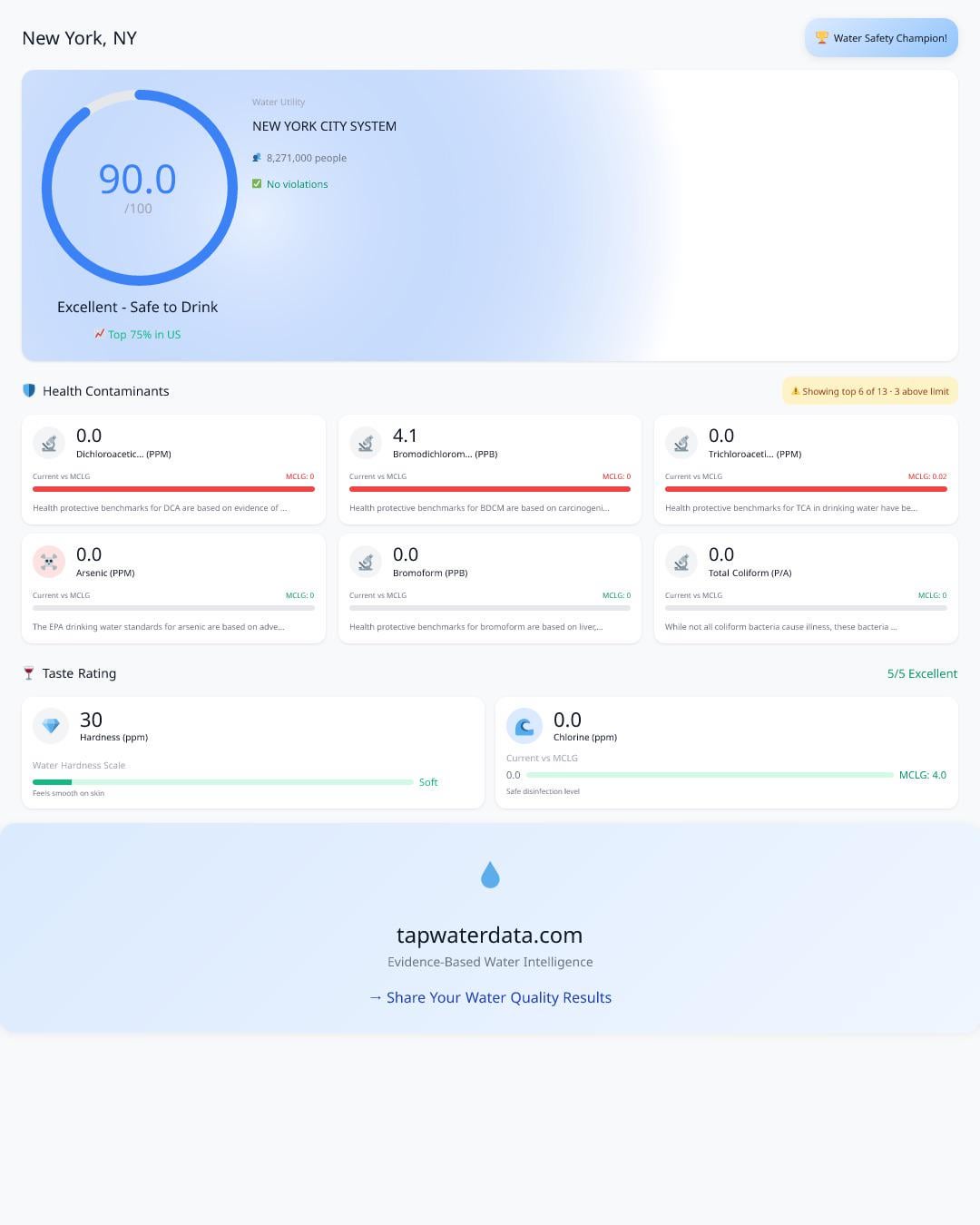 This is from my personal project about tap water quality: https://www.tapwaterdata.com/ny/new-york It is designed to be easily shared on social media. The image is generated in real time based on data on website page. by neo2bin