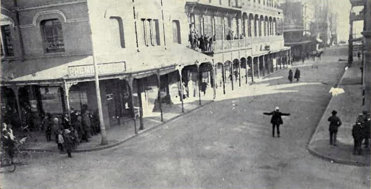 A lone South African Communist in the street calls on South African Police cavalrymen to shoot him during the early stages of the communist-white supremacist Rand Revolt. 1922, South Africa. [1274×649]