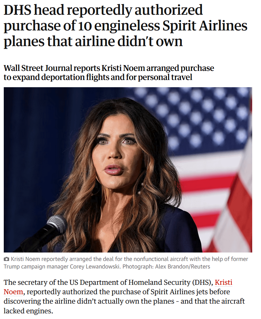 Unless I missed something, there’s no price tag mentioned for these 10 planes, only the two Gulfstream jets for $200m. How much did Kristi Klownshoes sign off on for the 10 useless hulks?