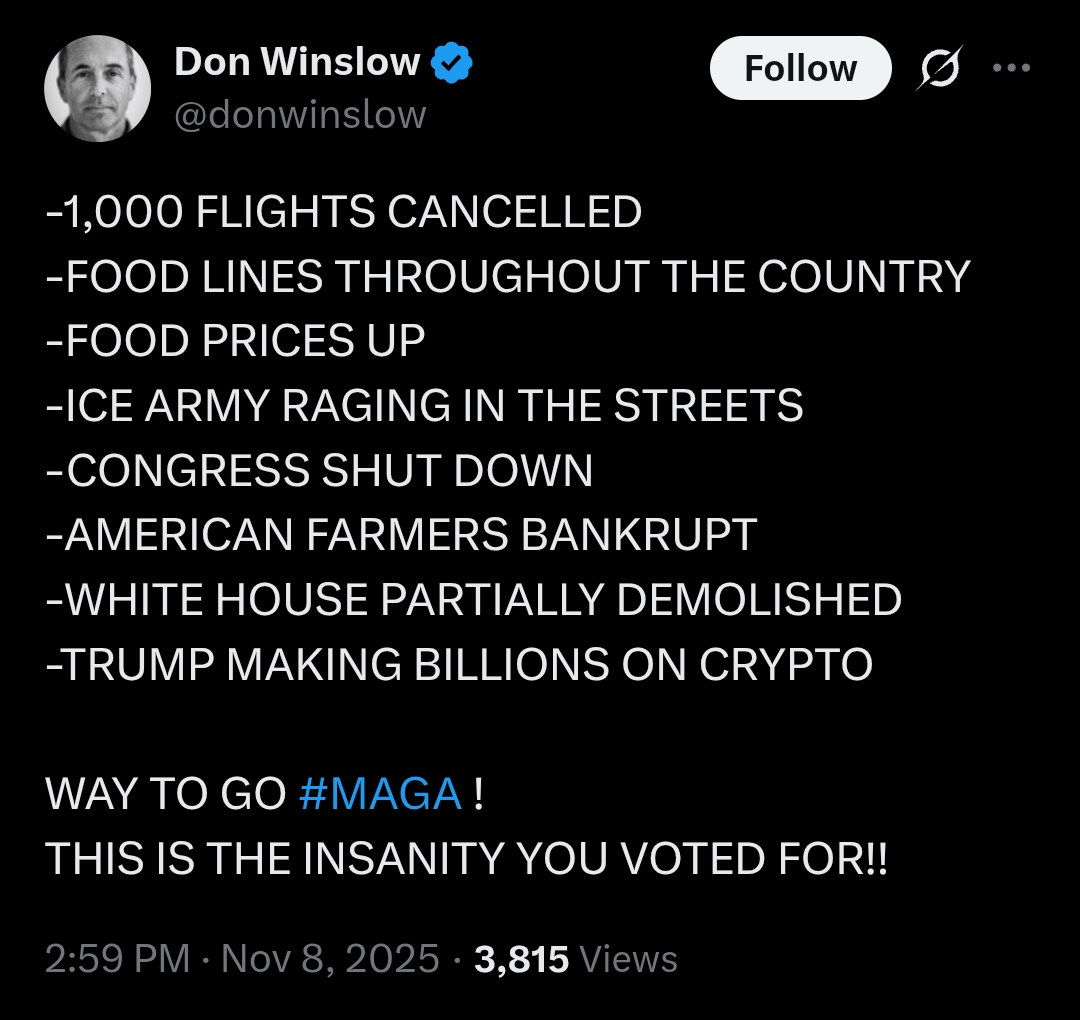 5. But the people that they wanted to see hurt are hurting. That’s all that really matters. ‘Sides those DODGE checks are coming right before the tarrif refunds are doled out. Oh and white supremacy is no longer something that has to be hidden. That’s the win they really wanted.