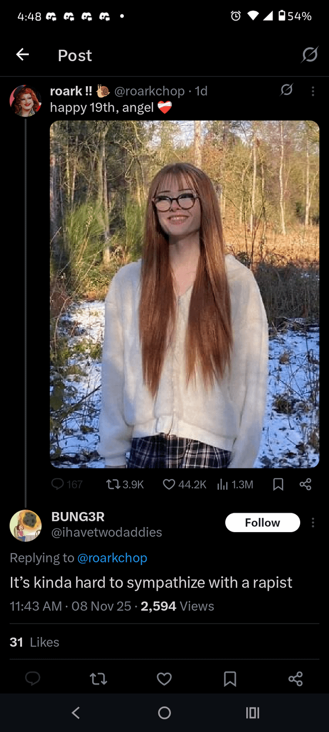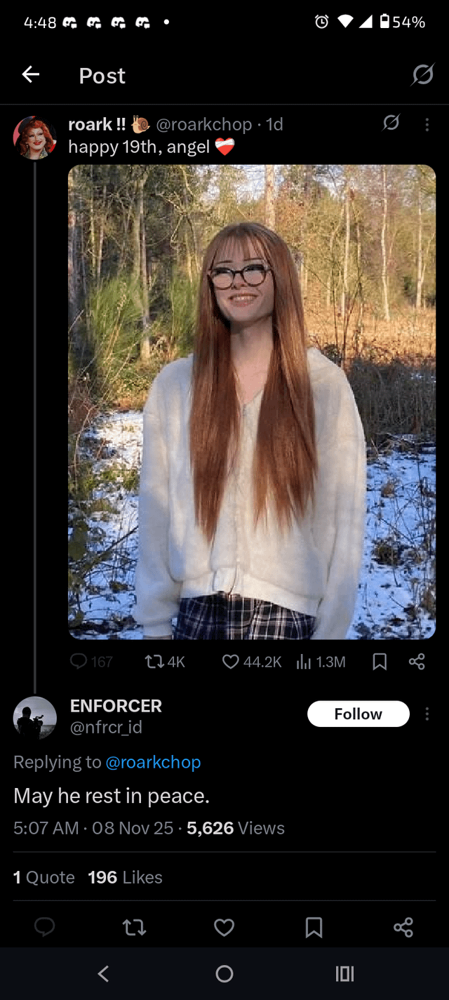 Seriously what the fuck. That’s bottom barrel scum shit. Fuck them. RIP girl. You were too good for this place.
