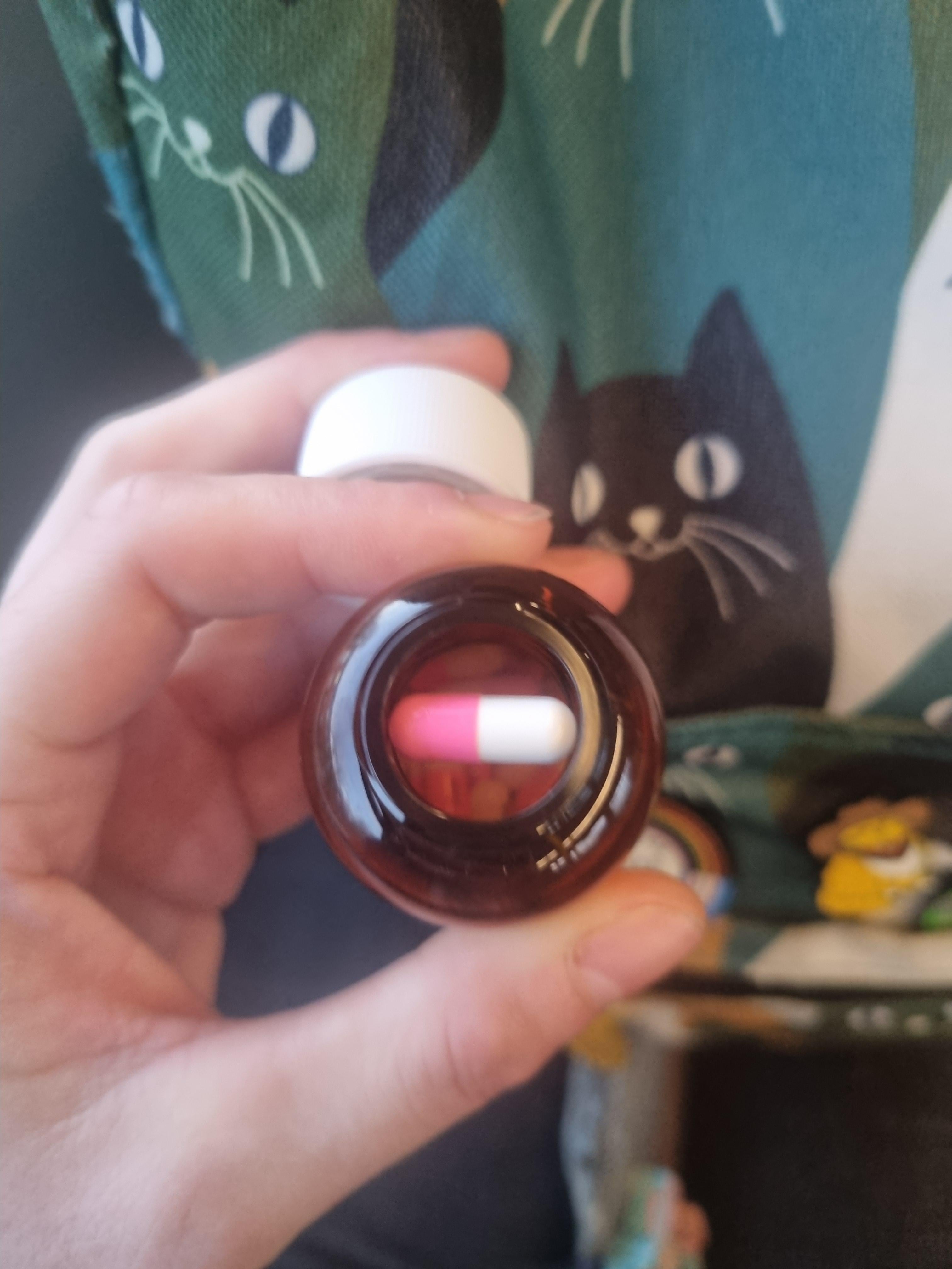 That pill’s got main character energy. just chilling solo like it knows it’s the final boss.