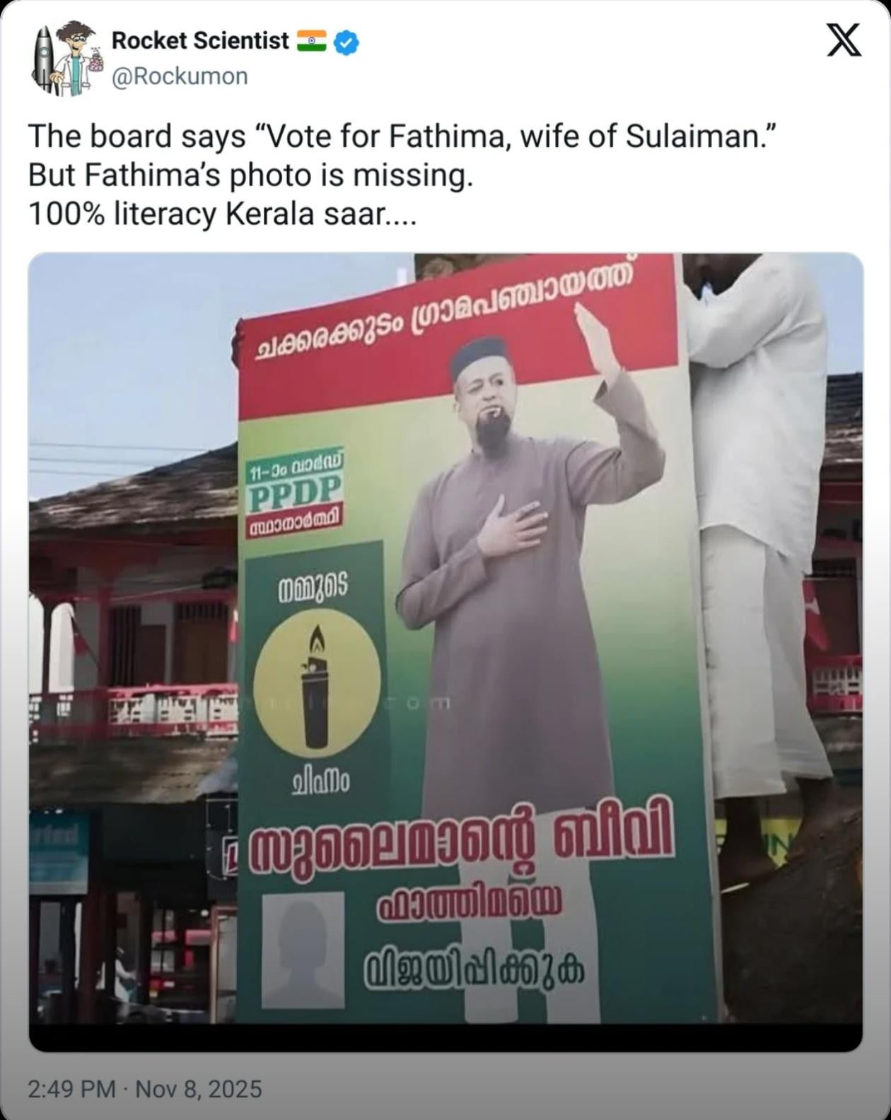 The poster is for a female contesting in a local election in Kerala- India