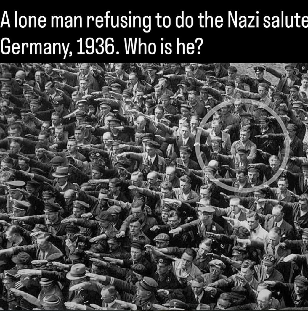That man is believed to be August Landmesser, a German who had joined the Nazi Party in 1931 hoping it would help him find work.