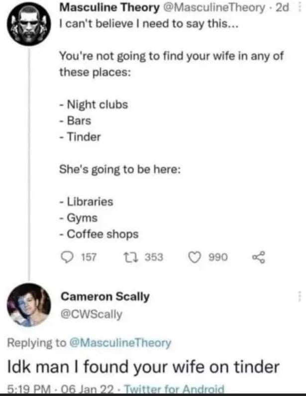 Thejiujitsushark on November 9, 2025 4:13 pm I met my wife on tinder nearly 12 years ago. We have three kids and are very happy.
