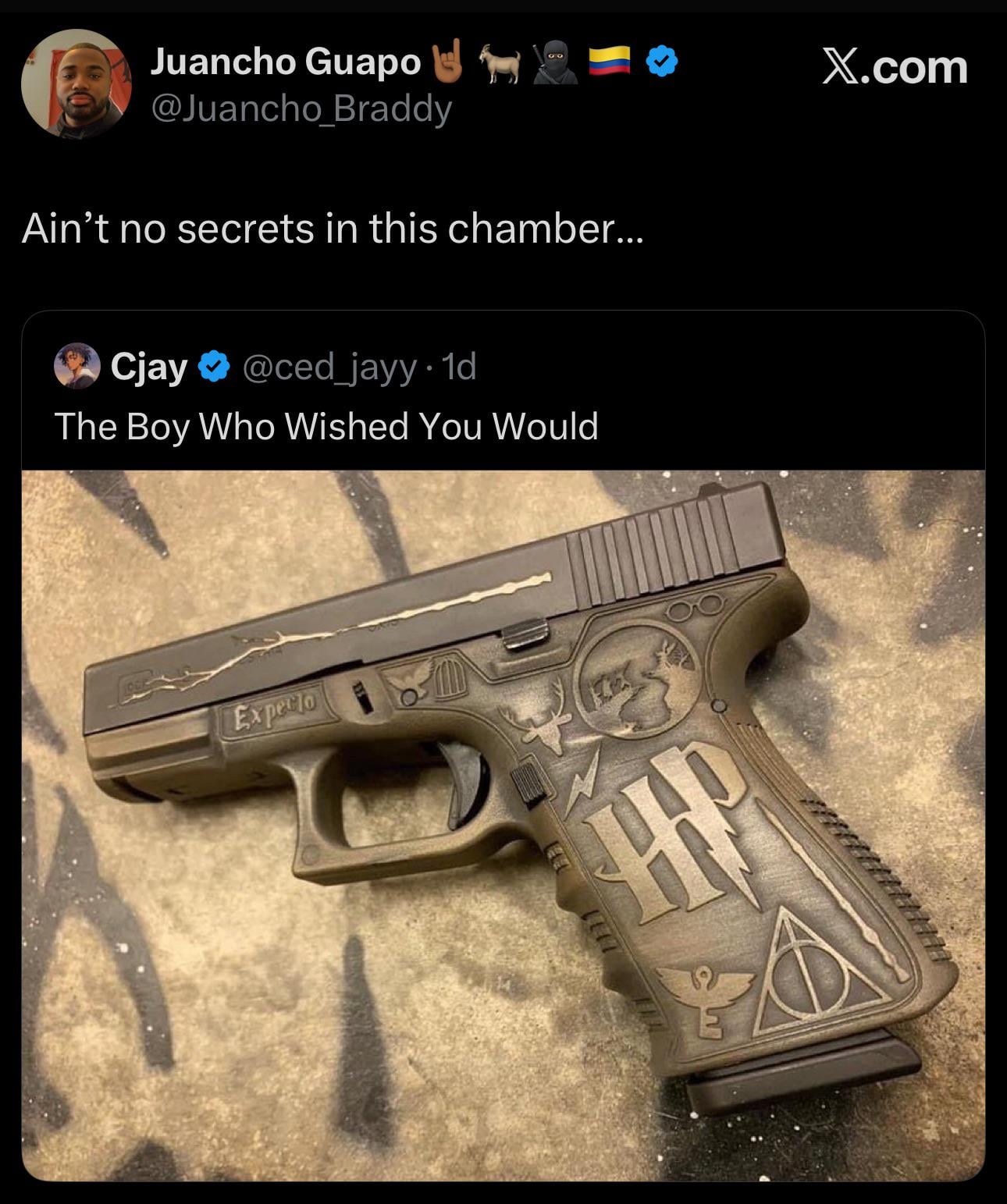The secretin the chamber is that the gun is about to misfire and kill a loved one.