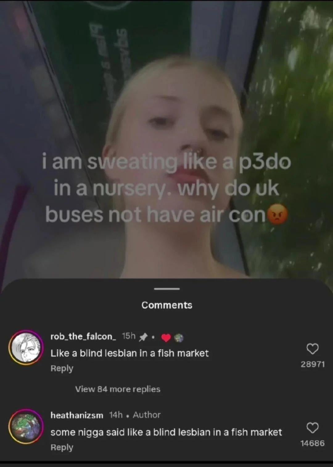 posh-u on November 9, 2025 7:17 pm To be fair, like a blind lesbian in a fish market is genuinely a fairly common (in that context) saying in the UK 😂