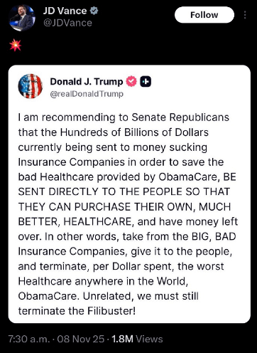 ACA insurance premiums went way up for 2026. Like 25%. I don’t know the institutional and outs.But, just as an idea I see two flaws. Either people would use it to buy the same coverage again, in which case I don’t know why it would be cheaper, or, they would buy less coverage or no coverage, which will work out for the lucky, but for those who end up needing it, what will happen. Will people be dying of expensive but treatable conditions, or will they then expect hospitals to just take care of them?