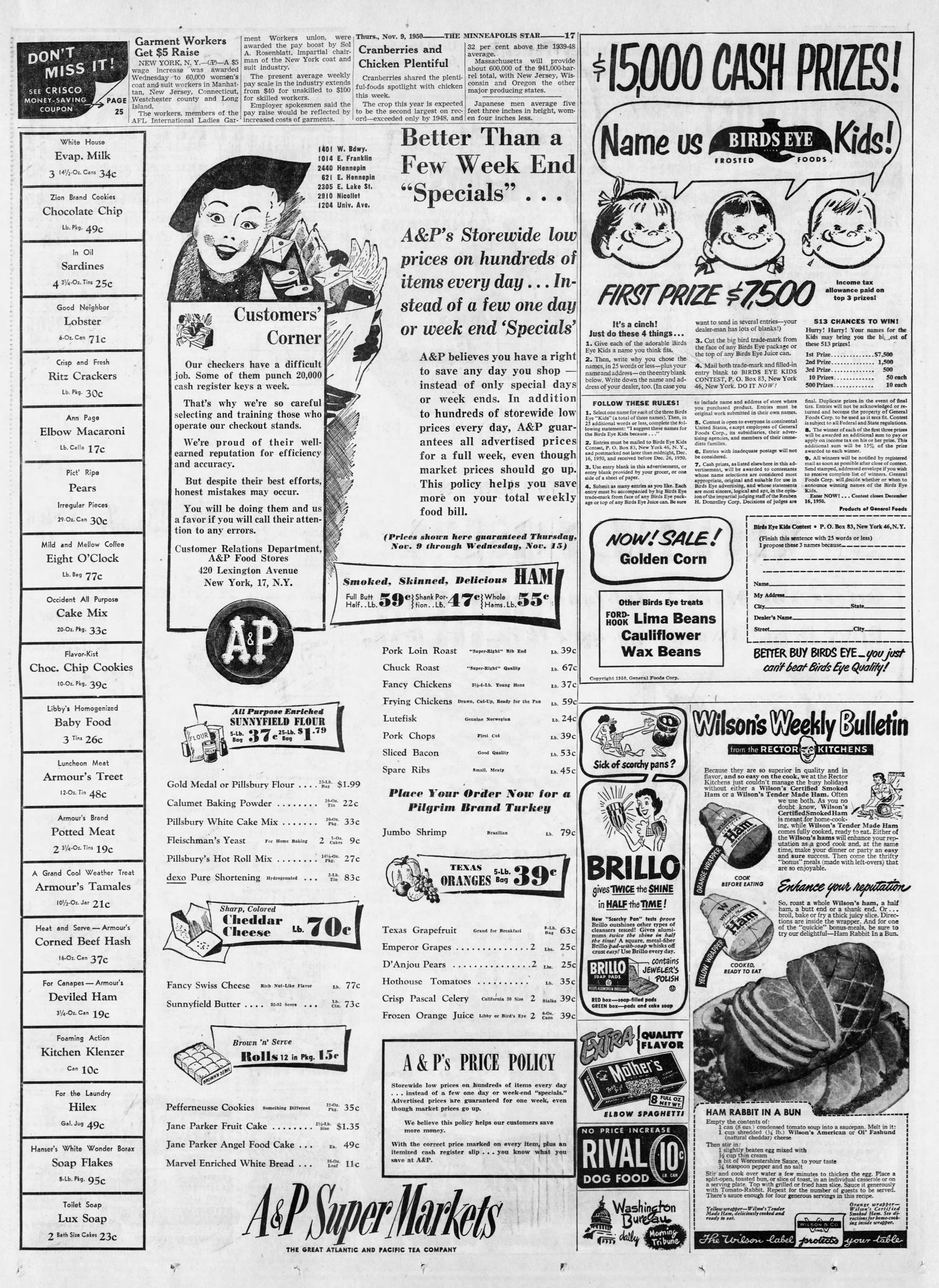 November 9, 1950: A&P Super Markets Advertisement – The Minneapolis Star