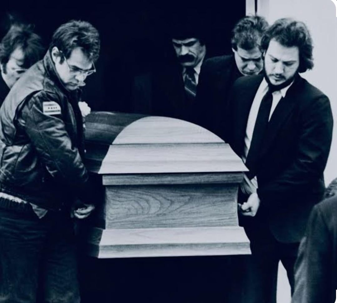 Bill Murray, Dan Ackroyd and friends at John Belushi’s funeral in 1982.