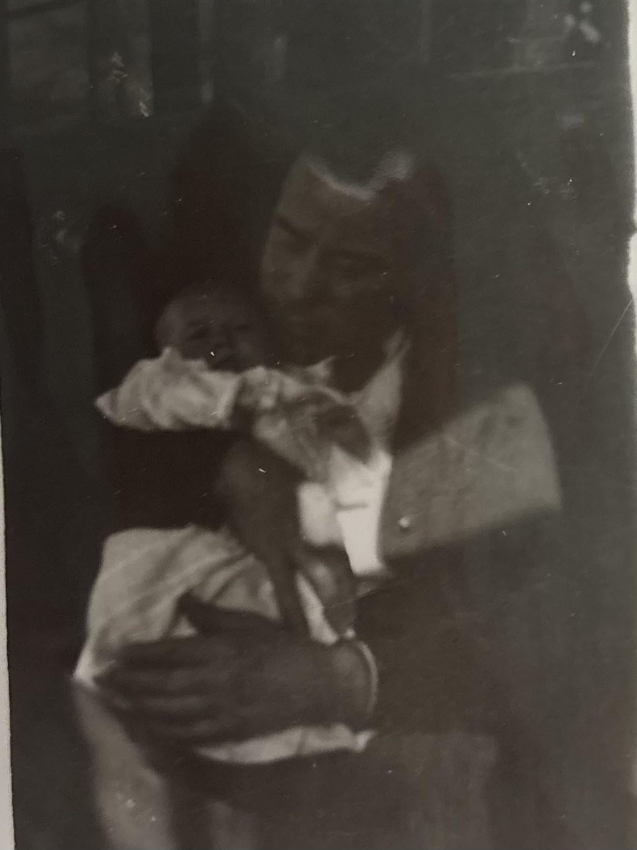 My 2x great grandfather, Frank holding my 2x great uncle, Frank Jr. on their farmhouse porch – Wyoming, 1935 by IMAFILTHYRAT